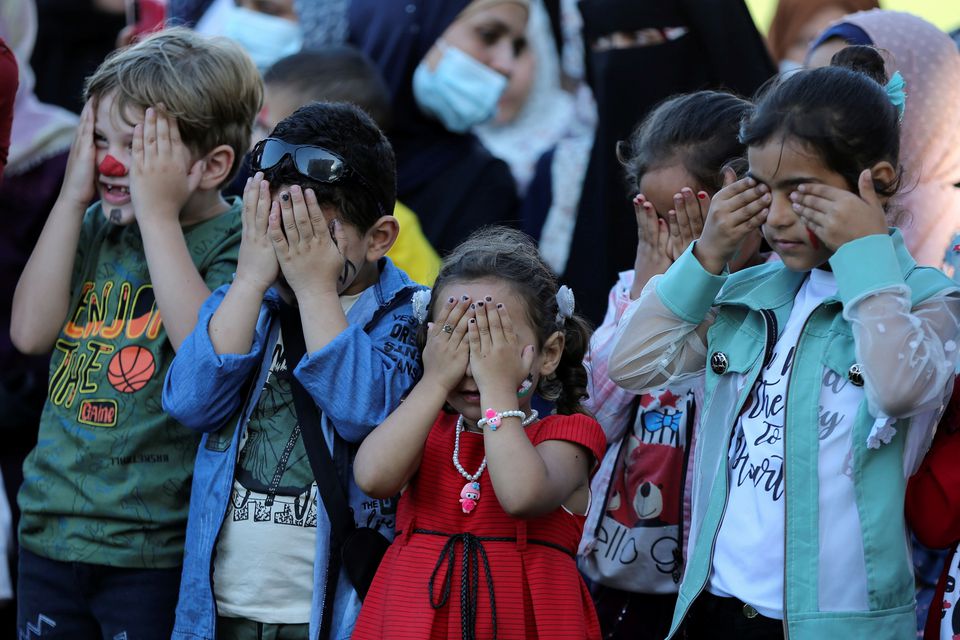 Palestinian children participate in a mental health support session in Khan Younis in the southern Gaza Strip, June 6, 2021. (Photo: REUTERS) |