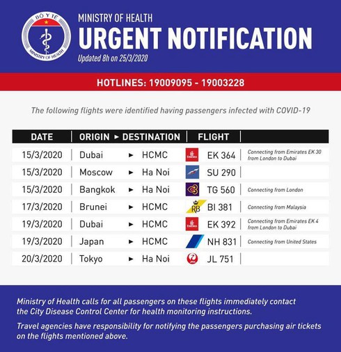 Ministry of Health's urgent notice on 7 flights with passengers contracting COVID-19