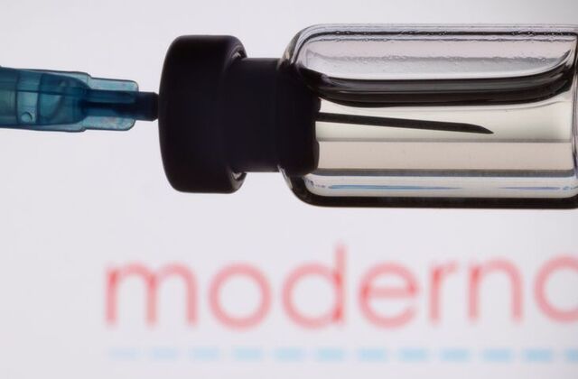 A vial and a syringe are seen in front of a displayed Moderna logo, in this illustration taken, November 27, 2021. (Photo: REUTERS) |
