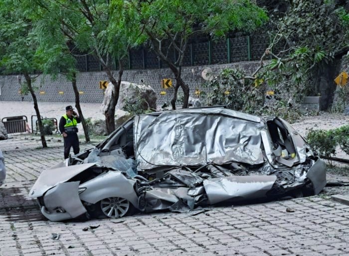 A car was smashed when the quake occurred in Taiwan, killing one person in the car. (Photo: CAN) |