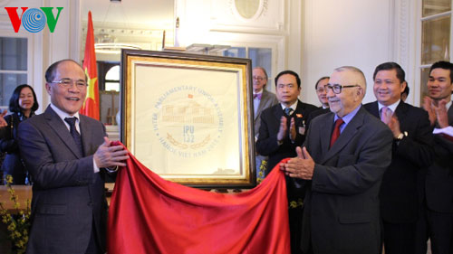 (VOV) - NA Chairman Nguyen Sinh Hung and his entourage paid a courtesy visit to Inter-parliamentary Union (IPU) President Abdelwahad Radi on Sunday. At the meeting, Chairman Hung expressed his belief that the 132nd IPU General Assembly will be a success. He thanked President Radi for his support for Vietnam in hosting the 132nd IPU General Assembly next March. He said the Assembly’s proposed theme - Parliaments and realization of post-2015 sustainable development - will offer parliaments a chance to share their views and priorities concerning development after 2015.