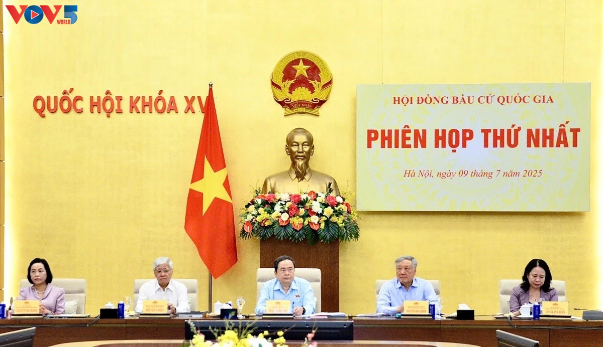 National Assembly Chairman Tran Thanh Man chairs the first session of the National Election Council. Photo: VOV |