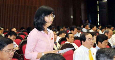 Deputy Tran Thi Hong Tham from Can Tho city said: "I propose additional regulations on the state management of publishers and see the introduction of development policies for publications. We should discuss setting up a database to manage every publication in the country, which would be more effective, and not expensive or time-consuming. Just by using a barcode like they use in supermarkets, we can check all the necessary information related to a publication such as the author, publishing house, licence number, and printing agency."