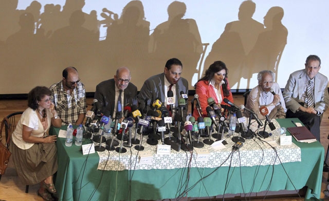 Mohamed ElBaradei (3rd L) launches his new party named “Dustour” (Constitution) during a news conference in Cairo April 28, 2012. Photo: Reuters |