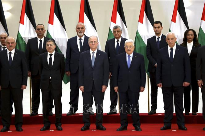 New Palestinian Prime Minister Mohammed Mustafa (center, front row) and new cabinet members at the swearing-in ceremony in Ramallah, West Bank, March 31, 2024. (Photo: XNA/VNA) |