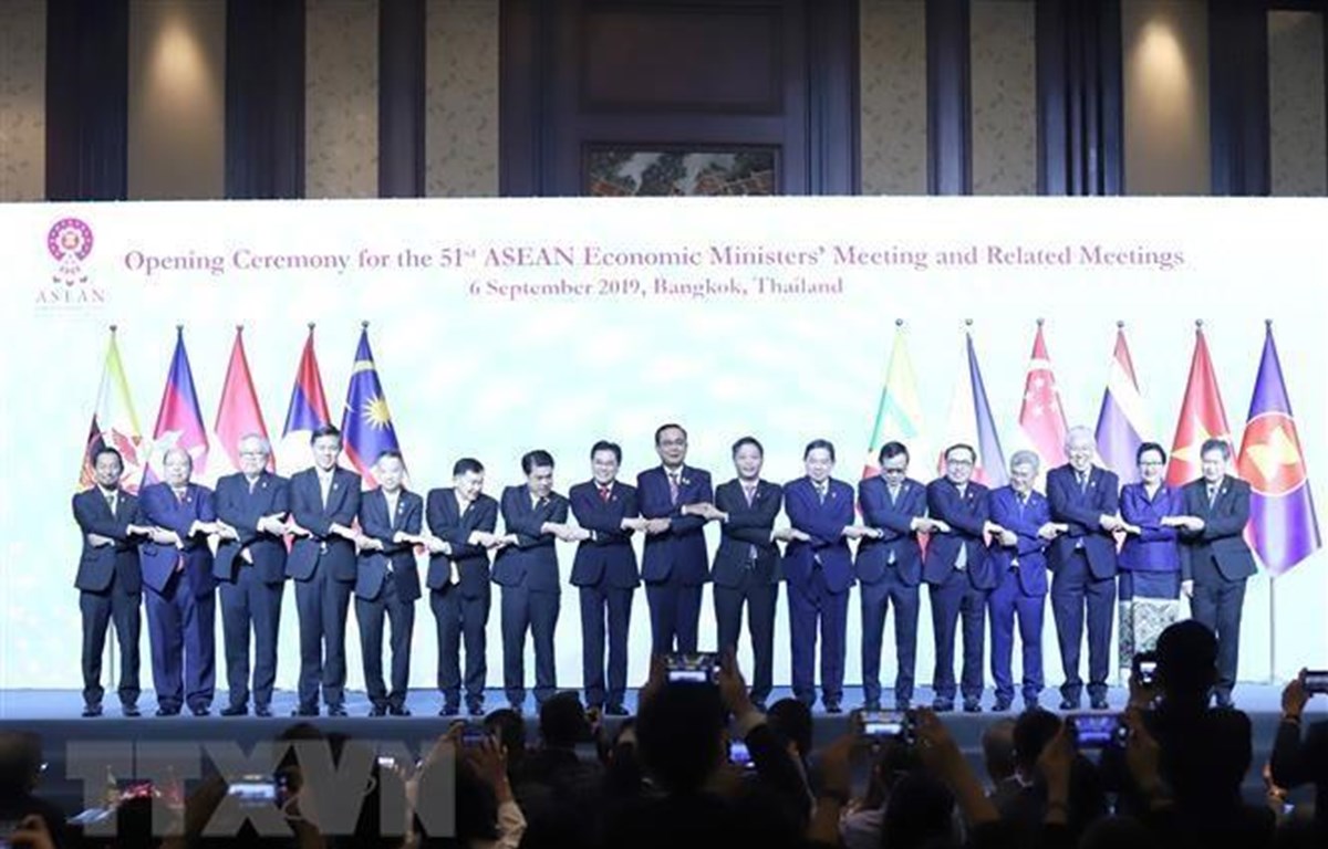 ASEAN economic ministers pose for a photo at their meeting that opens in Bangkok on September 6 (Photo: VNA)