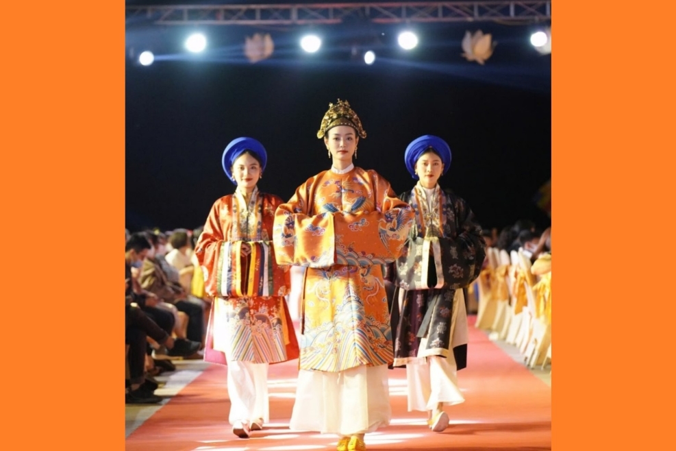 Vietnamese traditional attire on display at a fashion show in Tam Coc-Bich Dong, Hoa Lu Ancient Capital, Ninh Binh province (Photo: Management Board of Tam Coc - Bich Dong Tourist Area) |