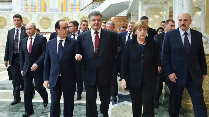 ![]() Normandy Four leaders take part in peace talks on resolving the Ukrainian crisis in Minsk, February 11, 2015.