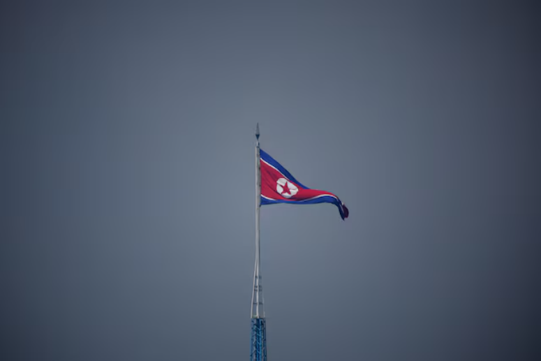 A North Korean flag flutters at village of Gijungdong in North Korea, in this picture taken near the truce village of Panmunjom inside the demilitarized zone (DMZ) separating the two Koreas, South Korea, July 19, 2022. (REUTERS) |