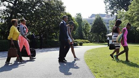 | US President Barack Obama (C) and his family walk to the helicopter to depart for travel to Africa from the South Lawn of the White House in Washington on Wednesday. Photo: Reuters |