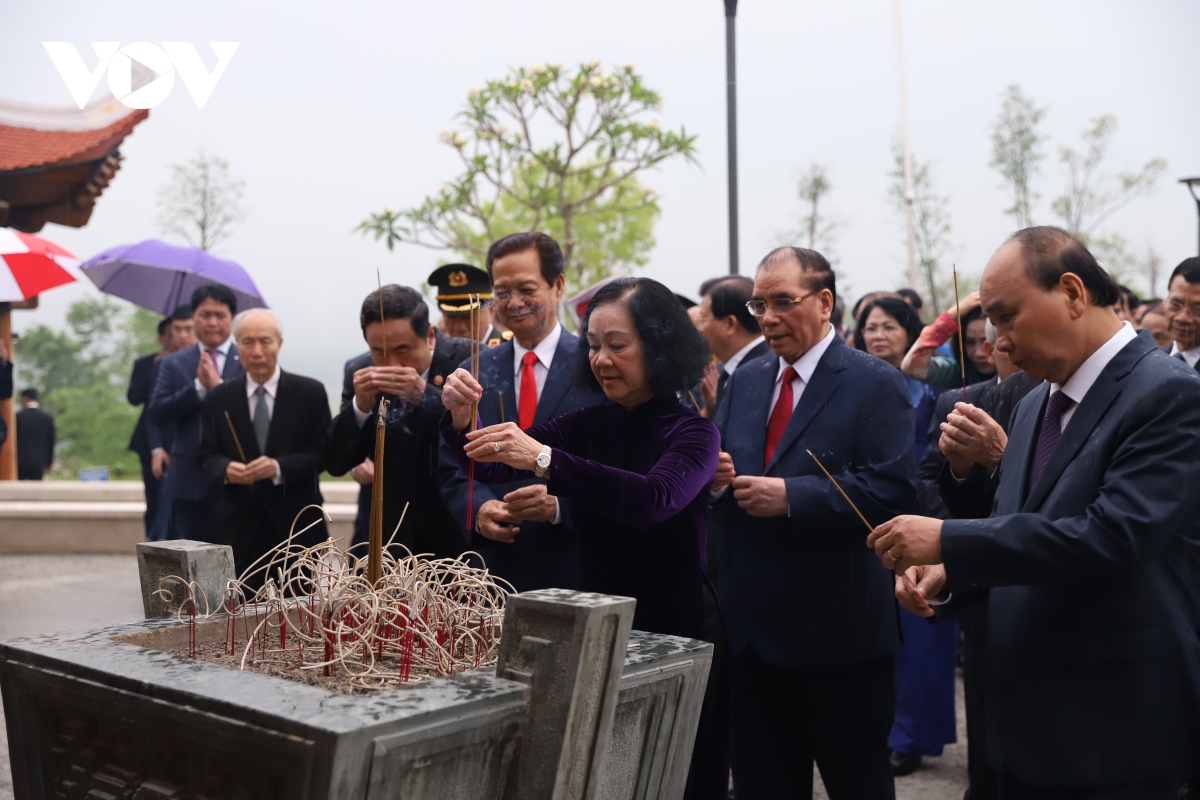 Incumbent leaders and former leaders of the Party and State offer incense to commemorate the heroic martyrs. Photo: VOV |
