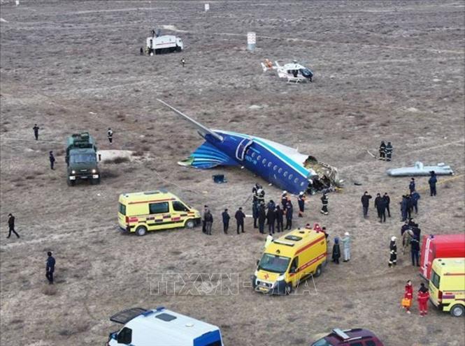 Authorities work at the scene of the Azerbaijan Airlines passenger plane crash near Aktau, Kazakhstan, December 25, 2024. Photo: REUTERS/VNA |