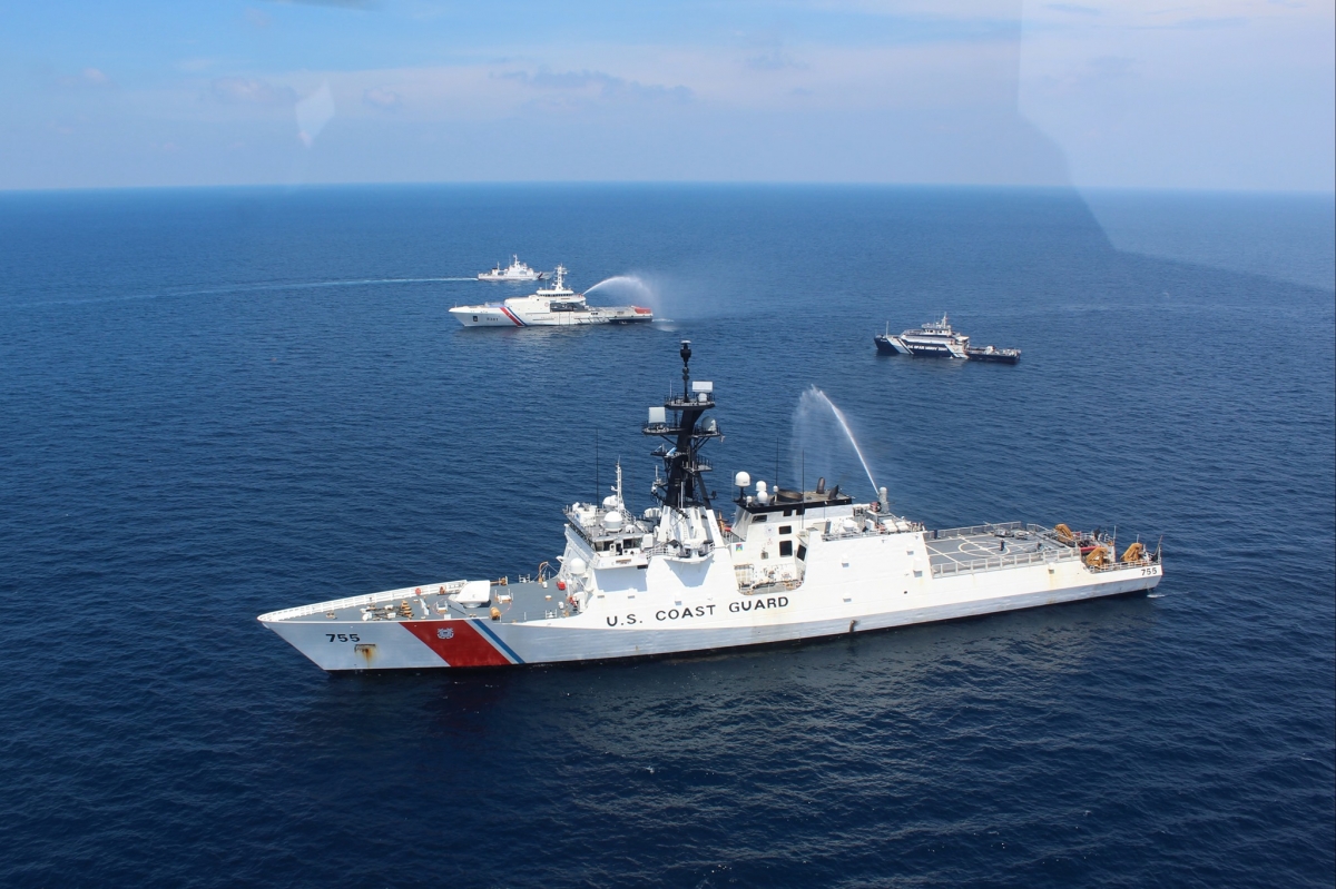 A US Coast Guard vessel participates in a joint maritime exercise with the Philippines. (Photo: Philippine Coast Guard) |
