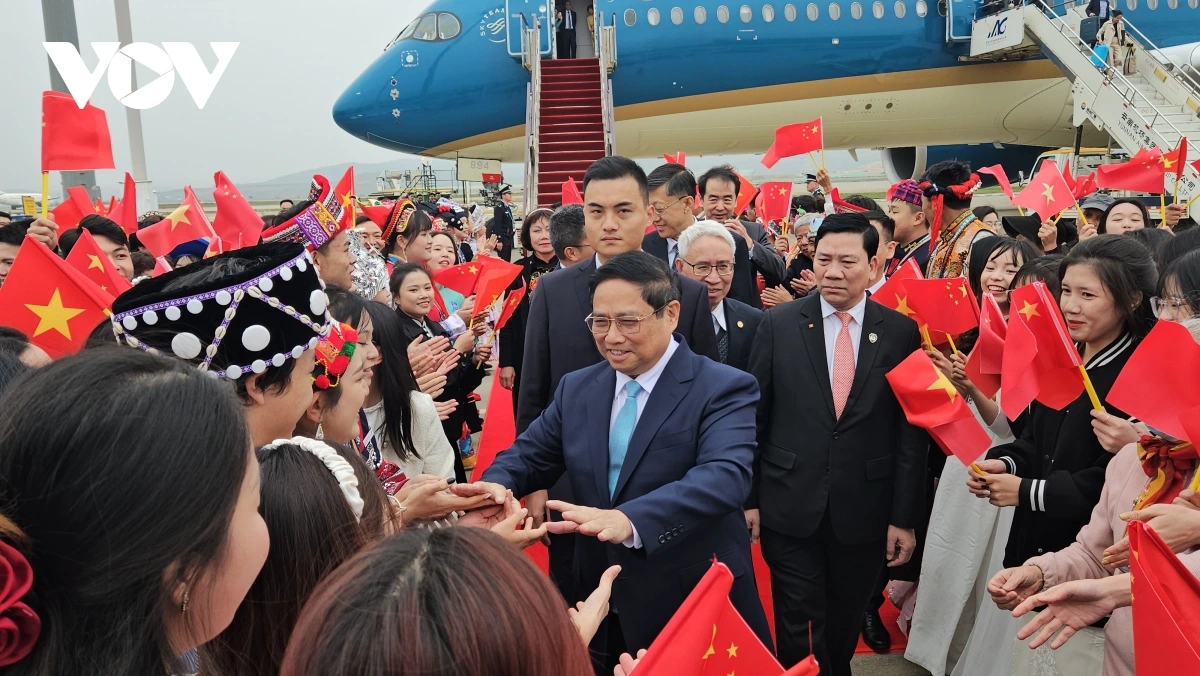 Prime Minister Pham Minh Chinh arrives in Kunming, starting a working trip to China. Photo: Vu Khuyen/VOV |