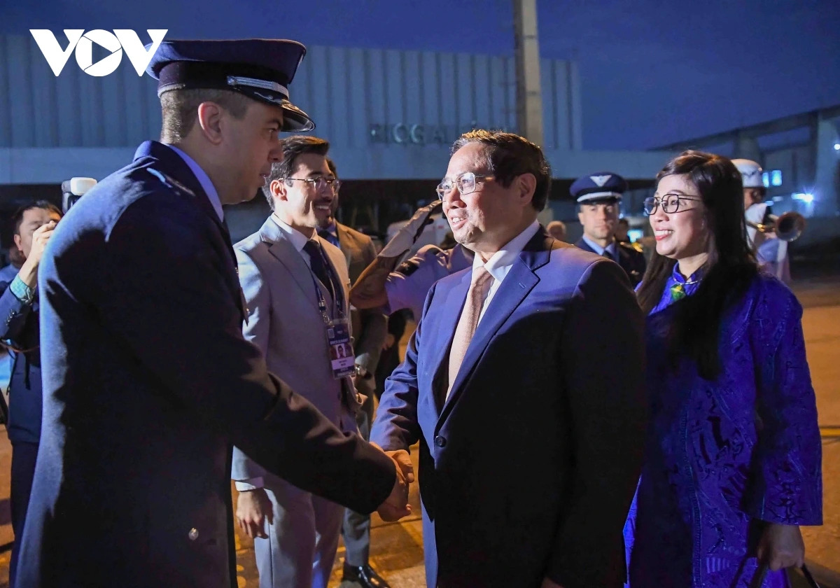 Prime Minister Pham Minh Chinh, his spouse, and the high-ranking Vietnamese delegation landed at Galeão Airport in Rio de Janeiro, Brazil on Saturday (Photo: VOV) |