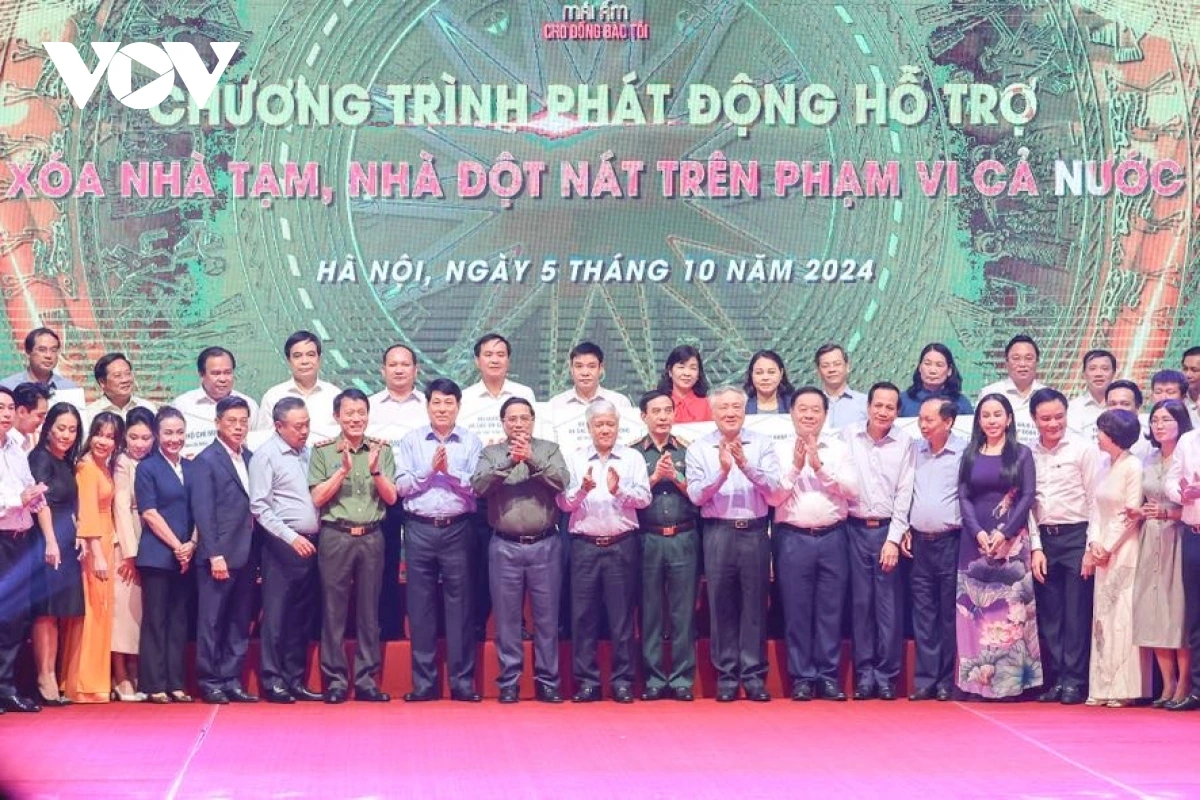 President of the Vietnam Fatherland Front Central Committee Do Van Chien called on collectives, individuals, businesses, overseas Vietnamese, foreigners living and working in Vietnam, and the whole society to provide support in cash, in kind, and efforts to help poor and near-poor households, together with the State to complete the goal of ensuring no one has to live in temporary and dilapidated houses by 2025, as set by Prime Minister Pham Minh Chinh.
