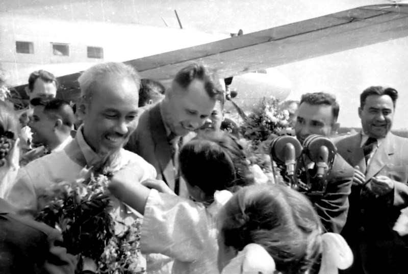 President Ho Chi Minh was welcomed when he visited Novosibirsk city in an official friendship visit to the Soviet Union (now the Russian Federation), on July 10, 1955. (Photo: Information and Exhibition Center of Ho Chi Minh City) |