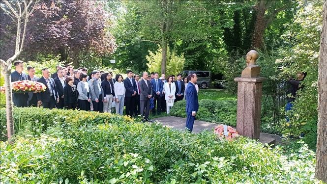 Vietnamese diplomats and French officials pay tribute to President HCM at Montreau Park, Parisk on May 18, 2024. (Photo: VNA) |