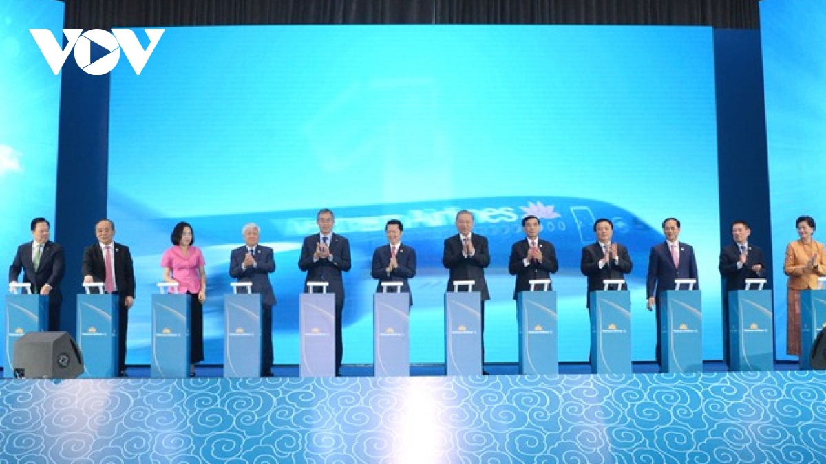 President To Lam attends a ceremony to announce the flight route between Hanoi and Phnom Penh. Photo: Viet Cuong/VOV |