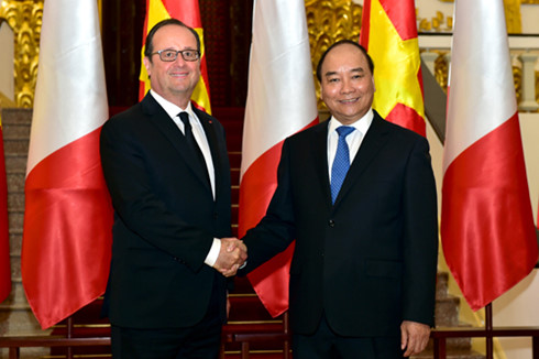 (VOVworld) – During a reception for visiting French President Francois Hollande in Hanoi on Tuesday, Prime Minister Nguyen Xuan Phuc said he was delighted at the results of talks between Mr. Hollande and President Tran Dai Quang and the positive cooperation between the two countries.