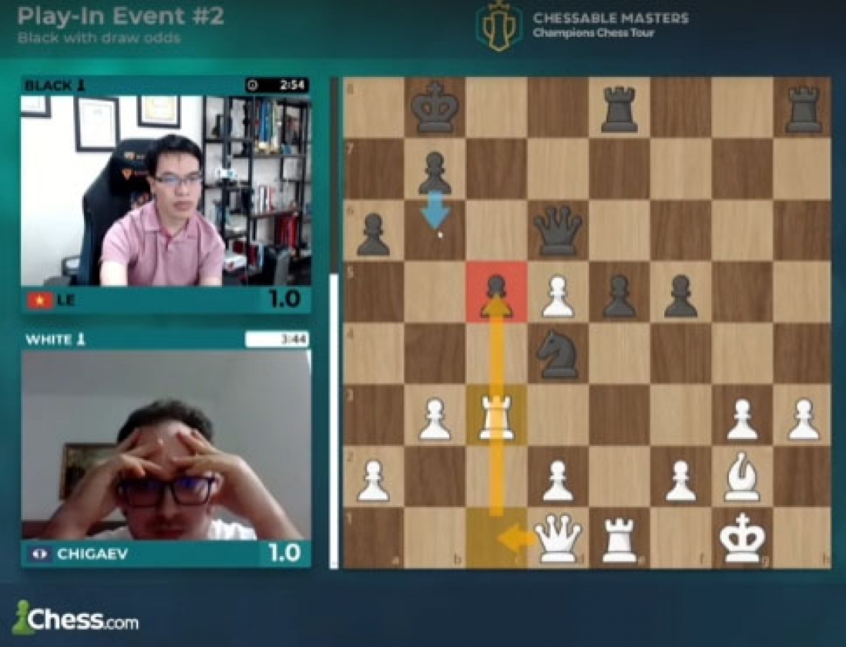 The Armageddon game between Quang Liem and Maksim Chigaev of Russia (Photo: Screenshot) |