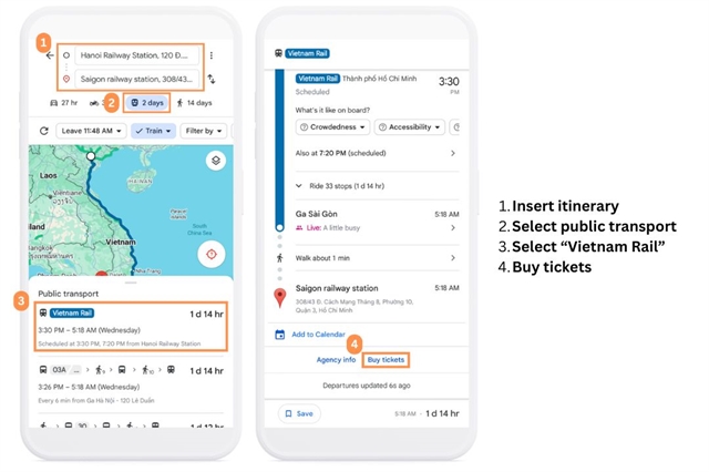 How to buy train tickets in Việt Nam on Google Maps. — VNS Screenshot |