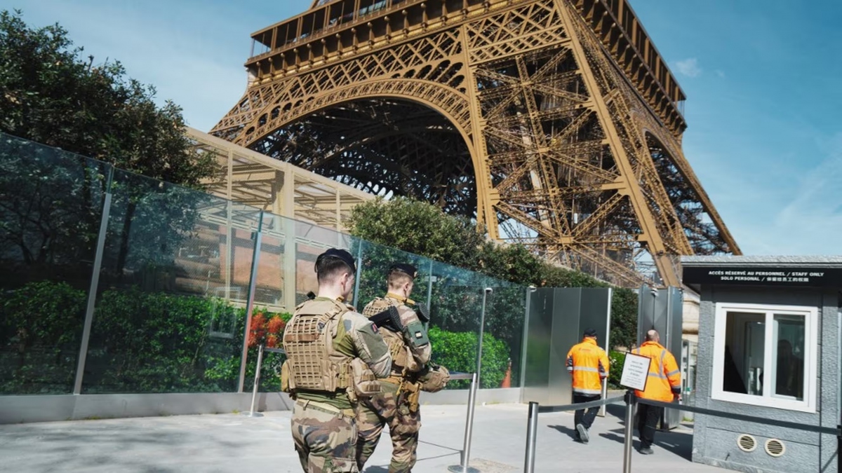 Soldiers are deployed near the Eiffel Tower, in Paris, March 25, 2024. (Photo: France Info) |