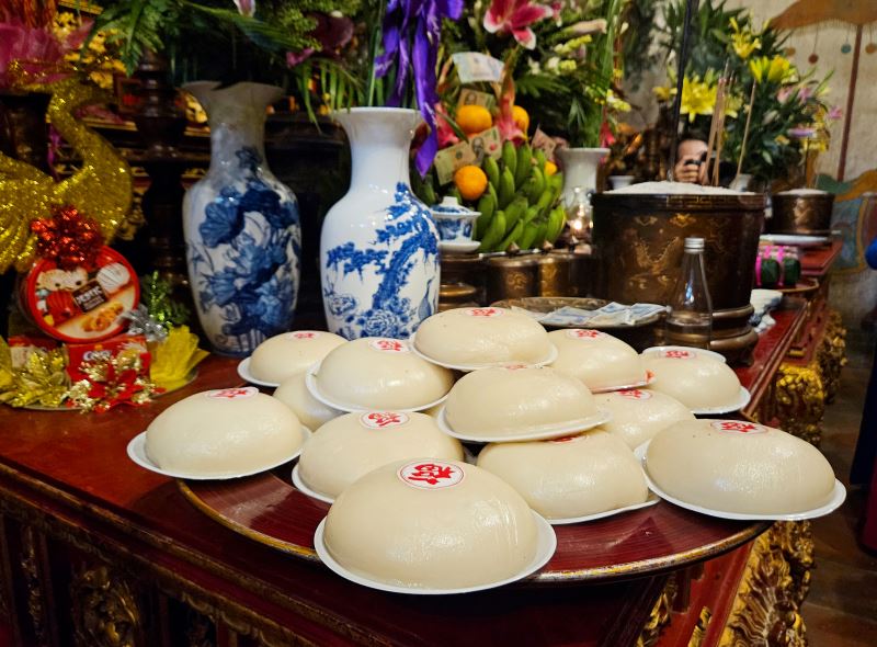 The offering included 18 “bánh chưng” from Cam Khe District and 18 “bánh dày” from Yen Lap District, each one weighing one kilogram.