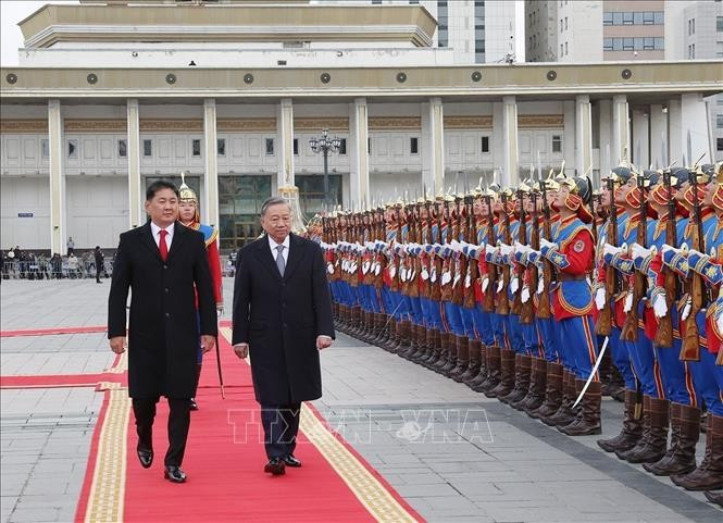 After the welcoming ceremony, President Ukhnaagiin Khurelsukh privately received General Secretary and President To Lam according to traditional Mongolian protocols. Then, both held talks and witnessed the signing of cooperation documents.
