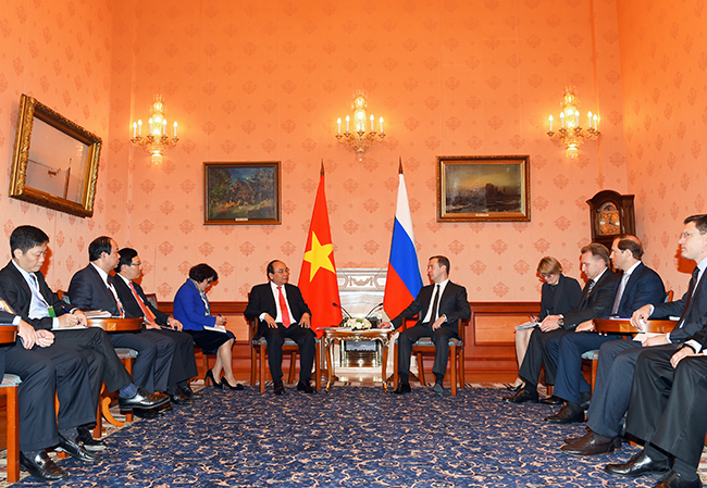 (VOVworld) – Prime Minister Nguyen Xuan Phuc and Russian Prime Minister Dmitry Medvedev have pledged to strengthen the two countries’ friendship and comprehensive strategic partnership during Prime Minister Phuc’s on-going visit to Russia. At a reception for Mr. Phuc, Mr. Medvedev said Russia has always considered Vietnam one of its top Asia-Pacific partners. Mr. Phuc stressed Vietnam’s consistent policy of promoting the traditional amity and comprehensive strategic partnership with Russia.