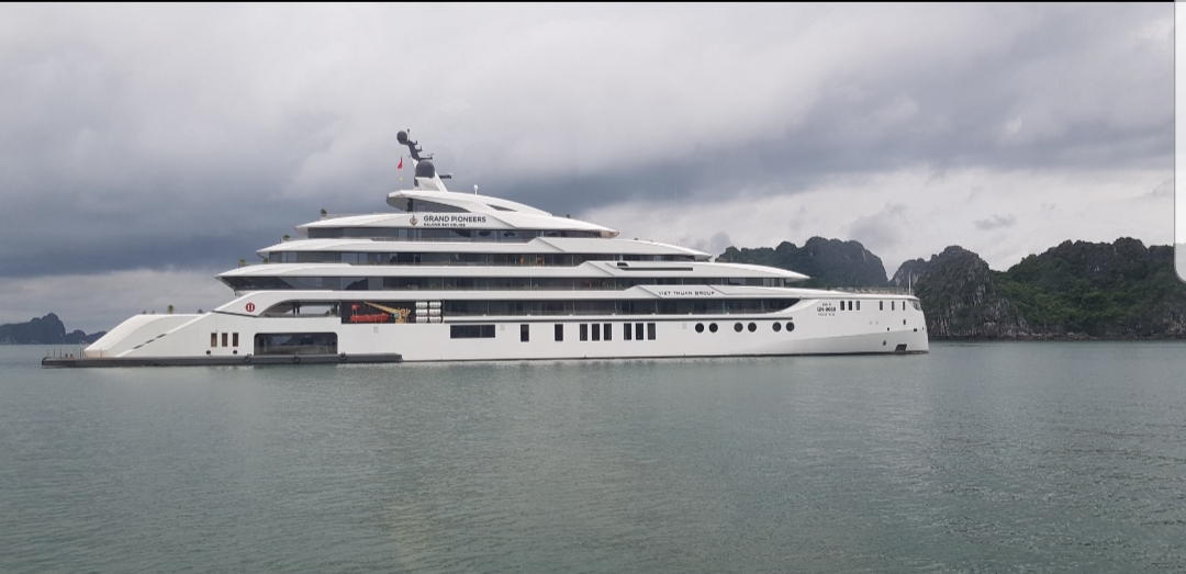 The Grand Pioneers 2, 100 meters long and more than 18 meters wide, was designed and made in Vietnam, and is the largest yacht in Ha Long Bay. With multiple decks and 1 basement, the superyacht can accommodate up to 160 overnight passengers.