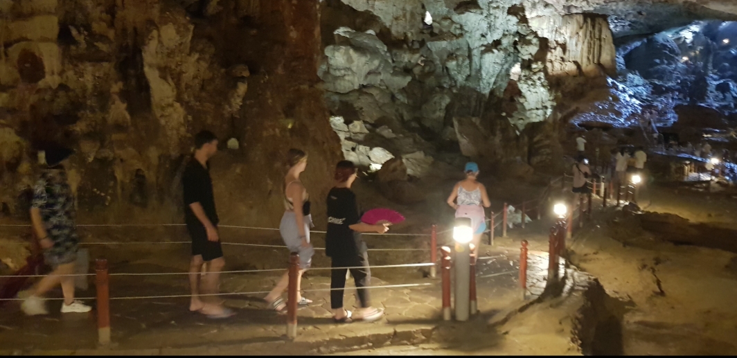 Tourists take a look around inside Sung Sot Cave. (Photo: Ngoc Anh/VOV) |