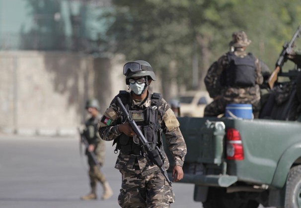A series of explosions rocked one of the most secure areas of the Afghan capital early Tuesday in an attack outside the presidential palace. Photo: Washingtonpost