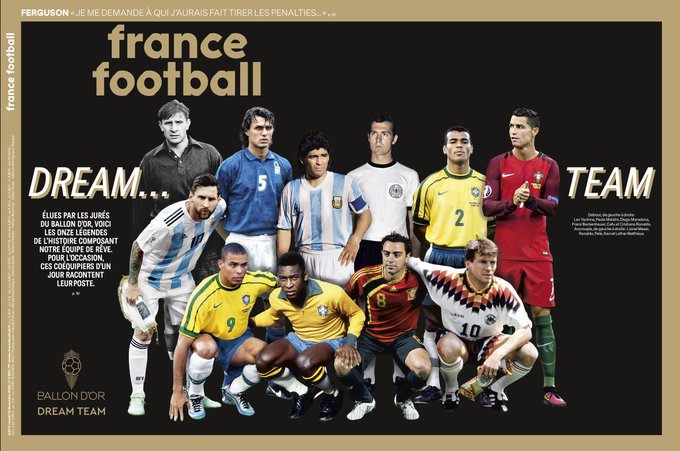 Having cancelled its annual Ballon d'Or (Golden Ball) award for the world's best footballer because of the Covid-19 pandemic, the weekly magazine instead has announced its best team in history, as voted by journalists from 170 countries and regions.