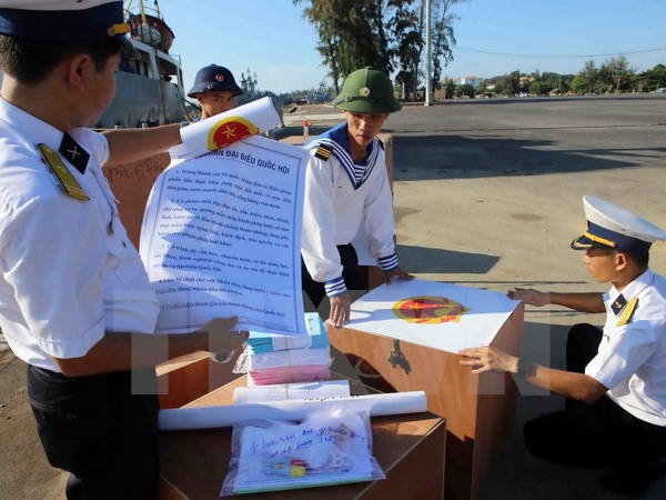 (VOVworld) – Two naval ships of Brigade 146, Navy zone 4, left Cam Ranh military port in Khanh Hoa province on Thursday headed for Truong Sa archipelago to help military forces and fishermen working there vote for on the 14th NA and People’s Councils at all levels for the 2016-2021 tenure.