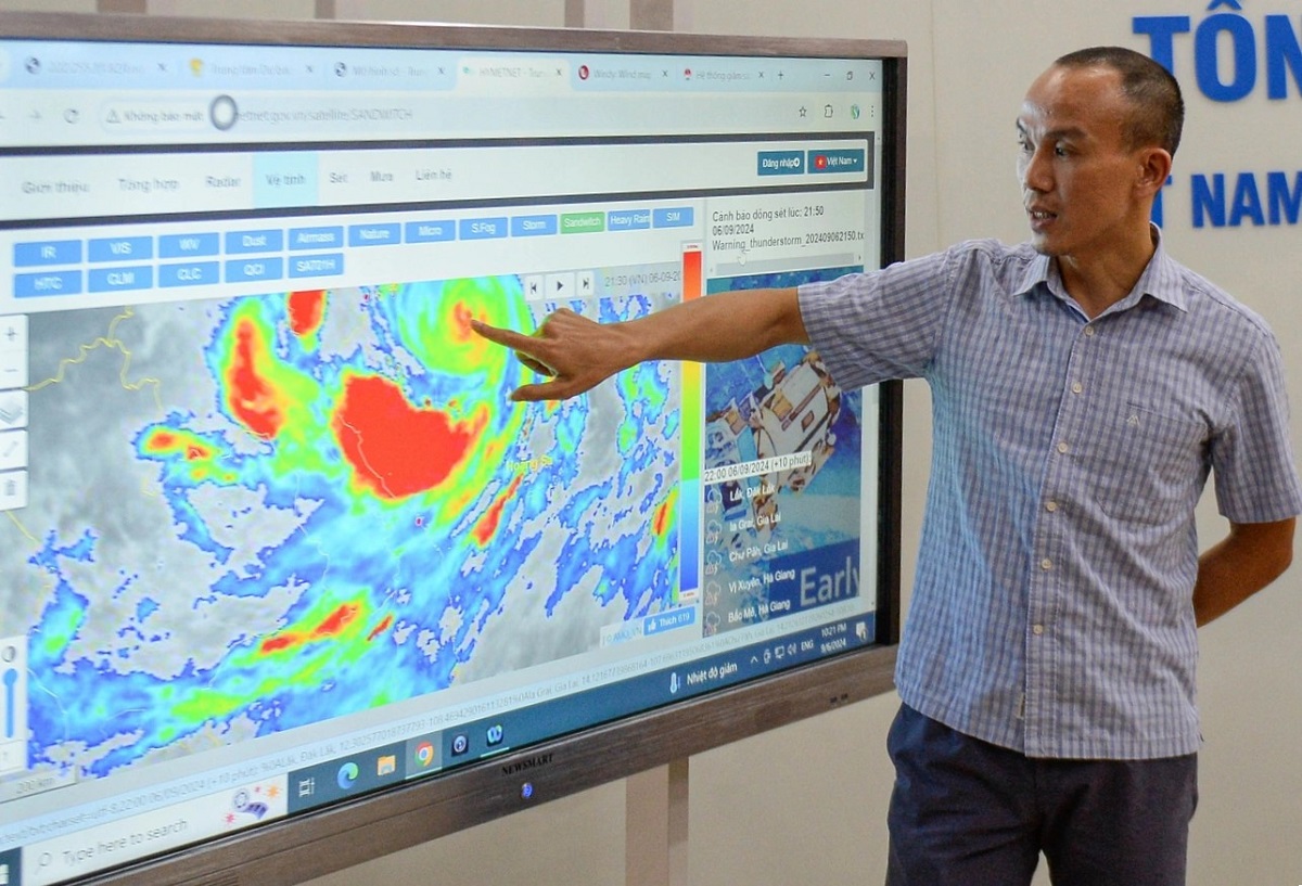 Hoang Phuc Lam, Deputy Director of the National Center for Hydro-Meteorological Forecasting reports on the developments of the typhoon (Photo: Nguyen Hai/dantri.com.vn) |