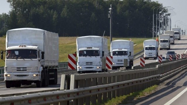 ![]() A Russian convoy of trucks carrying humanitarian aid for Ukraine (photo: bbc.com) |