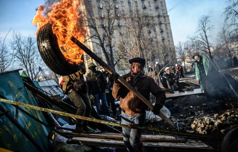 | An anti-government demonstrator burned a tire on Independent Square in Kiev n Feb 21, 2014 (Photo: AFP) |