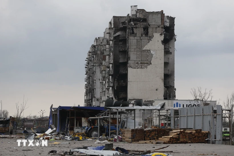 A damaged building in the port city of Mariupol, Ukraine, April 22, 2022 (Photo: Xinhua/ VNA) |