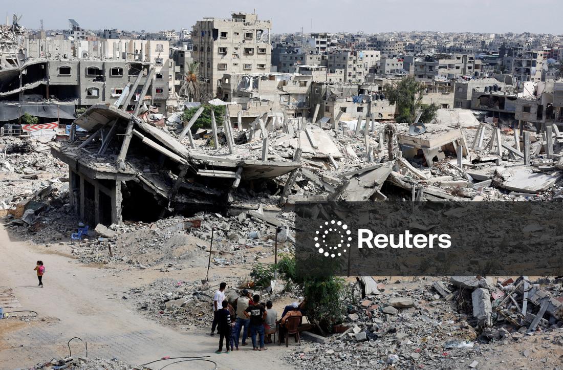 Scenes of destruction after an Israeli airstrike in Khan Younis, Gaza Strip on October 7, 2024 (Photo: Reuters//Mohammed Salem) |