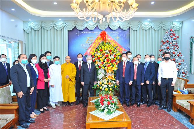 VFF leader Do Van Chien extends Christmas greetings to Protestant Church in Vietnam (northern) (Photo: Minh Duc/VNA) |