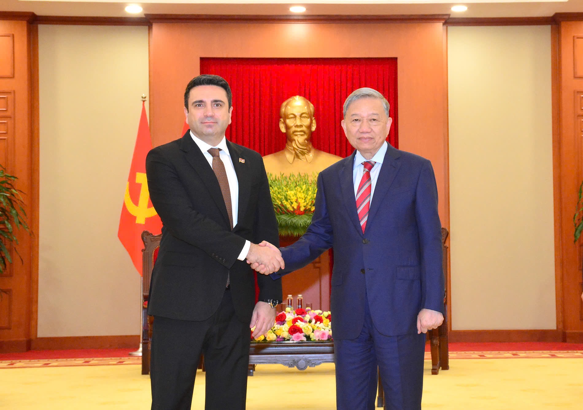 Party leader To Lam welcomes President of the National Assembly of Armenia, Alen Simonyan, Hanoi, November 20, 2024. |