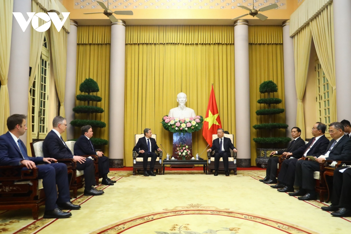 Vietnam considers the US a top partner of strategic importance, says President To Lam at a reception for US Secretary of State Antony Blinken (Photo: VOV) |