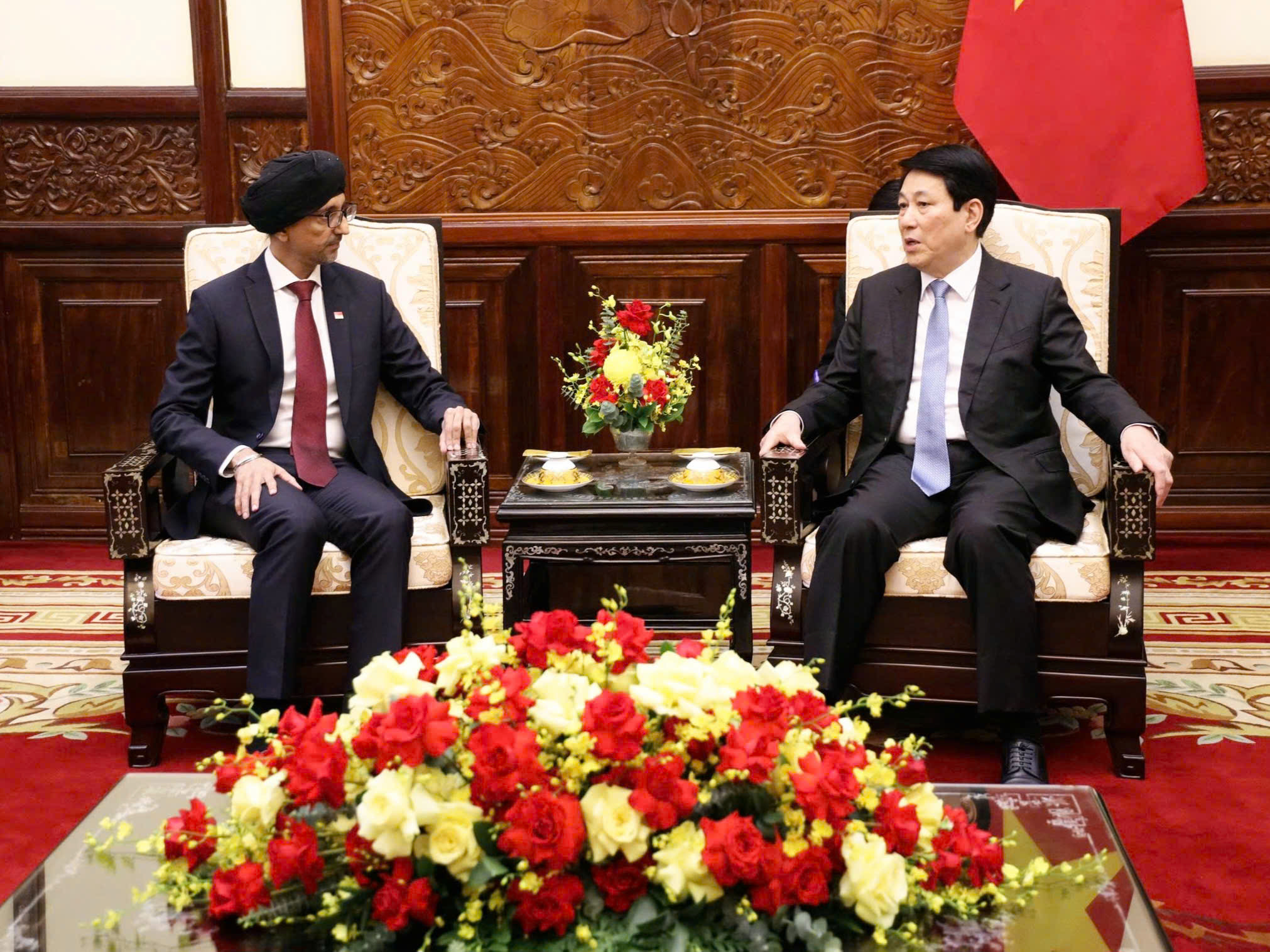 Congratulating Indian Ambassador Tshering W. Sherpa on his new posting, President Cuong proposed that the two countries create breakthroughs in economic, trade, and investment cooperation; fully leverage their geoeconomic advantages and market potential; and further advance collaboration in defense, security, science and technology, and people-to-people exchanges.