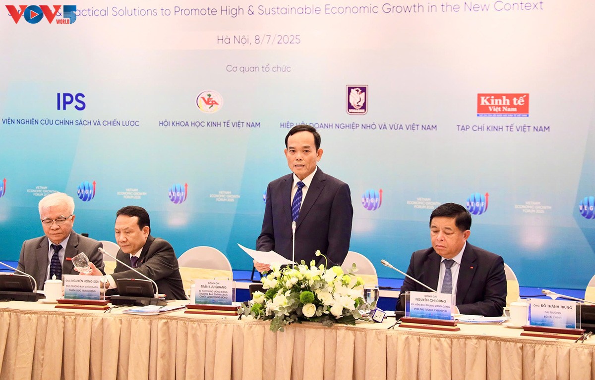 Tran Luu Quang, Secretary of the Party Central Committee, speaks at the VEGF 2025, Hanoi, July 8. |