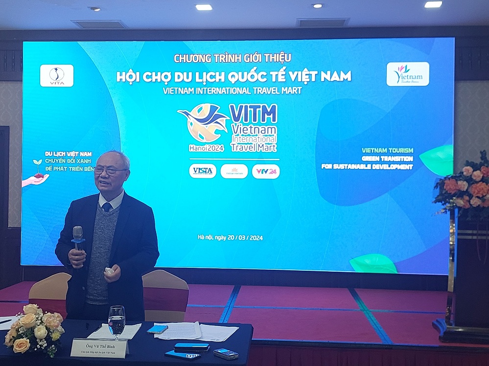 Vu The Binh, Chairman of the Vietnam Tourism Association, addresses the Vietnam International Tourism Mart 2024 (Photo: VOV) |
