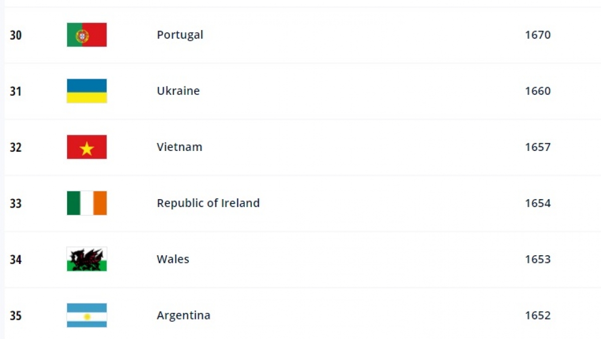 According to details given by the Vietnam Football Federation (VFF), the women’s team have risen to 32nd spot with 1,657 points, one place higher than their position during the first quarter.