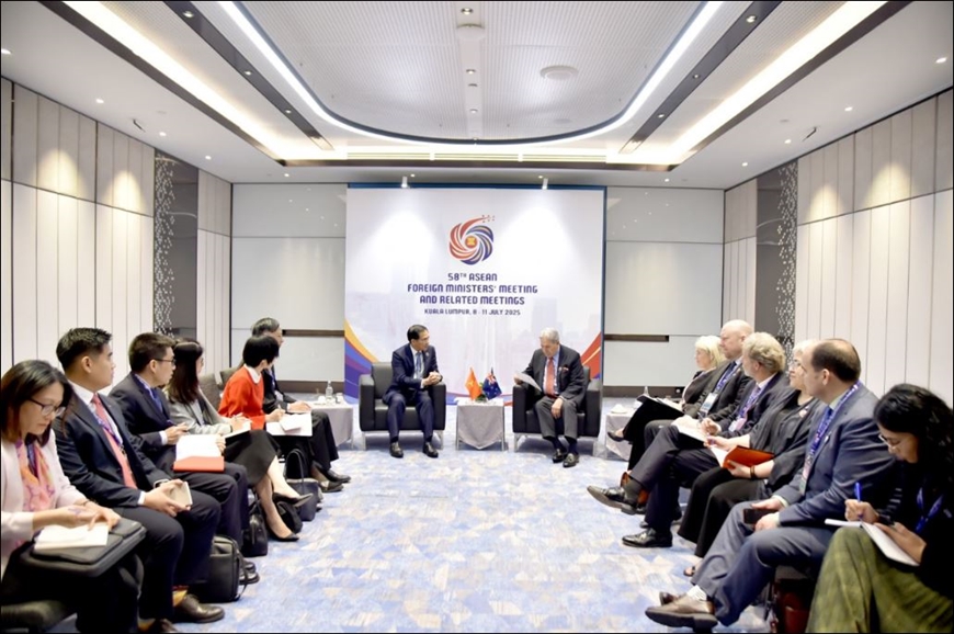 On the sidelines of the 58th ASEAN Foreign Ministers’ Meeting (AMM-58) and related meetings in Kuala Lumpur, Malaysia, Vietnamese Deputy Prime Minister and Foreign Minister Bui Thanh Son and New Zealand Foreign Minister Winston Peters met on Thursday to discuss the development of an Action Program to implement the newly upgraded Partnership framework. The two sides also discussed the organization of the 3rd Foreign Ministers’ Meeting later this year and the implementation of the agreements reached during New Zealand Prime Minister Christopher Luxon’s visit to Vietnam in February.