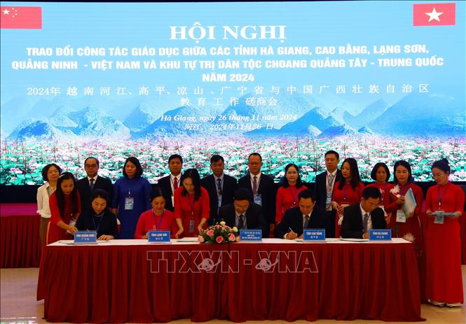 A Memorandum of Understanding on fostering friendly relations and education cooperation was signed by representatives of the four provincial Departments of Education and Training, the Department of Education of the Guangxi Zhuang Autonomous Region, and the Ha Giang Department of Labor, Invalids, and Social Affairs.