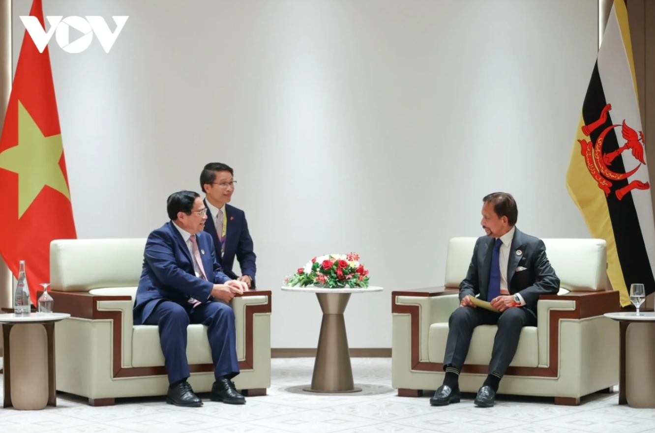 Vietnamese Prime Minister Pham Minh Chinh and Sultan of Brunei Haji Hassanal Bolkiah at their meeting in Vientiane, Laos, on October 9. |